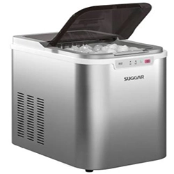 A Suggar MG1502PR é uma máquina de gelo portátil projetada para quem busca autonomia. Com um design moderno em acabamento prata, ela se adapta bem a bancadas de cozinha, varandas gourmet ou até escritórios.